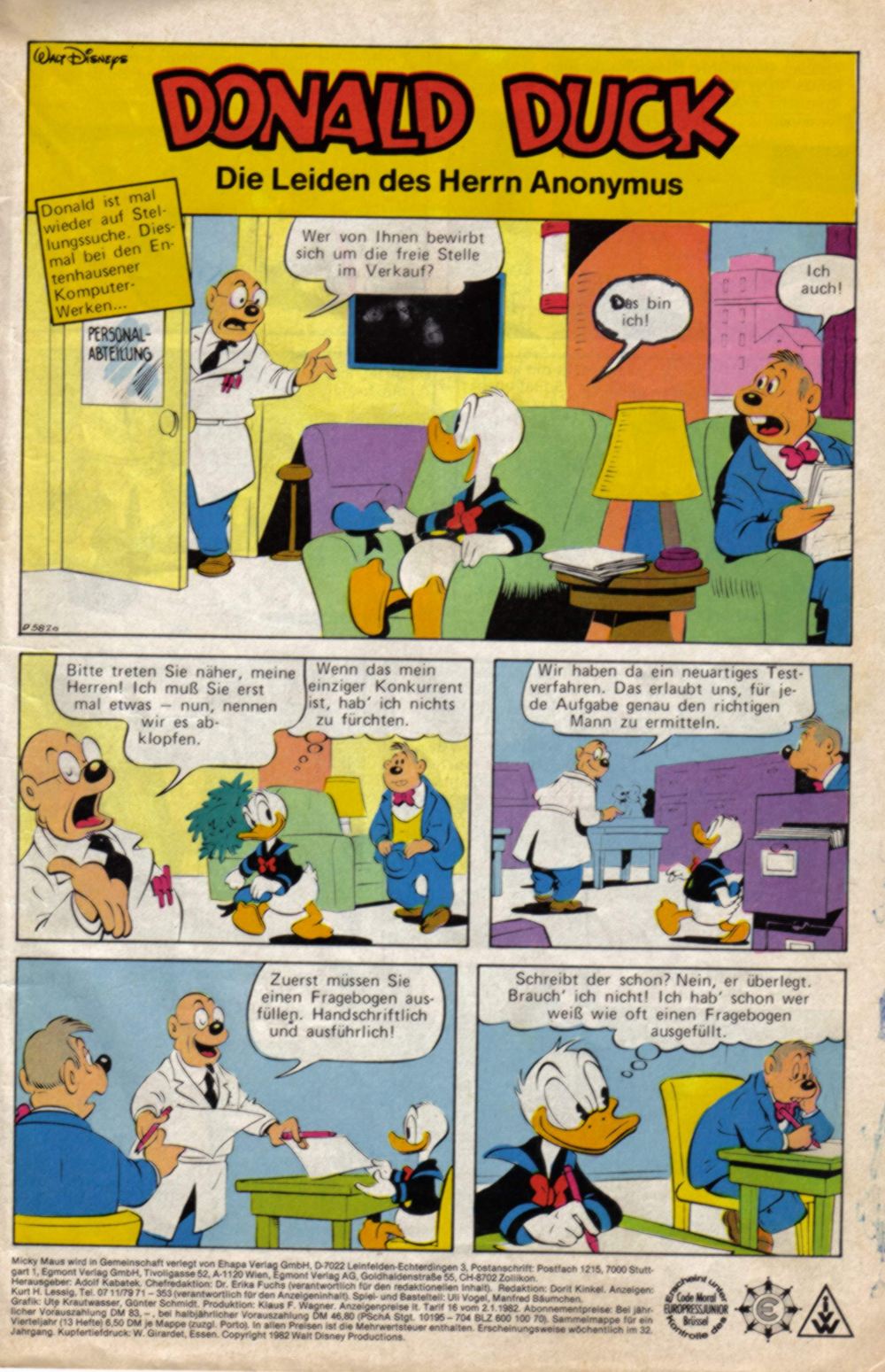 >Nein Bernd, nicht auf Donald Duck.