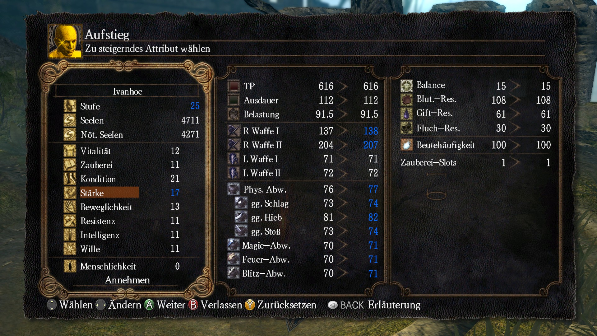 Bernd ist aktuell nochmal Dark Souls am zockieren. Er hat nie Demon's Souls gespielt, hat aber Dark Souls 2 gehasst und seitdem kein Seelenähnlich mehr angefasst. Gerade den Ziegendämon gelegt, beim vierten Versuch. Der Knilch alleine ist wirklich kein großes Problem, er hat sogar weniger HP als etwa ein schwarzer oder silberner Ritter, aber die verdammten Hunde machen einen fertig. Bernd hat ein wenig gekäst, indem er oben auf den Bogen gelaufen und von dort die Hunde totgestochen hat. Danach ist er runtergesprungen und hat dem Dämon eine gekeult. Bild 2 ist einfach nur der letzte Stufenaufstieg; Bernd fand die eine XP-Zahl ganz lustig, höhöh. Als nächstes geht es in die Tiefen, erstmal große Glut holen und Keule ein bisschen aufbauen und dann den Fotzendrachen wegbuxxen.